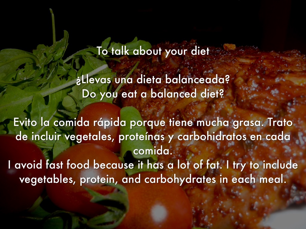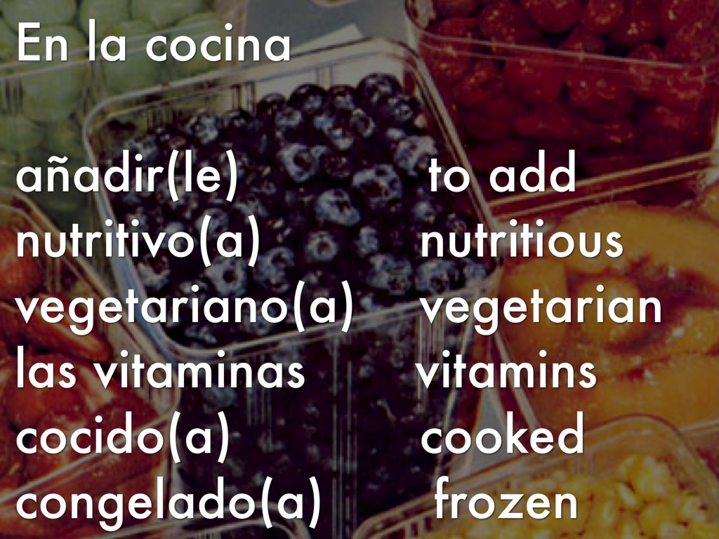 Objetivo: Aprenderé vocabulario sobre una dieta sana.