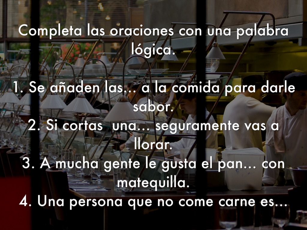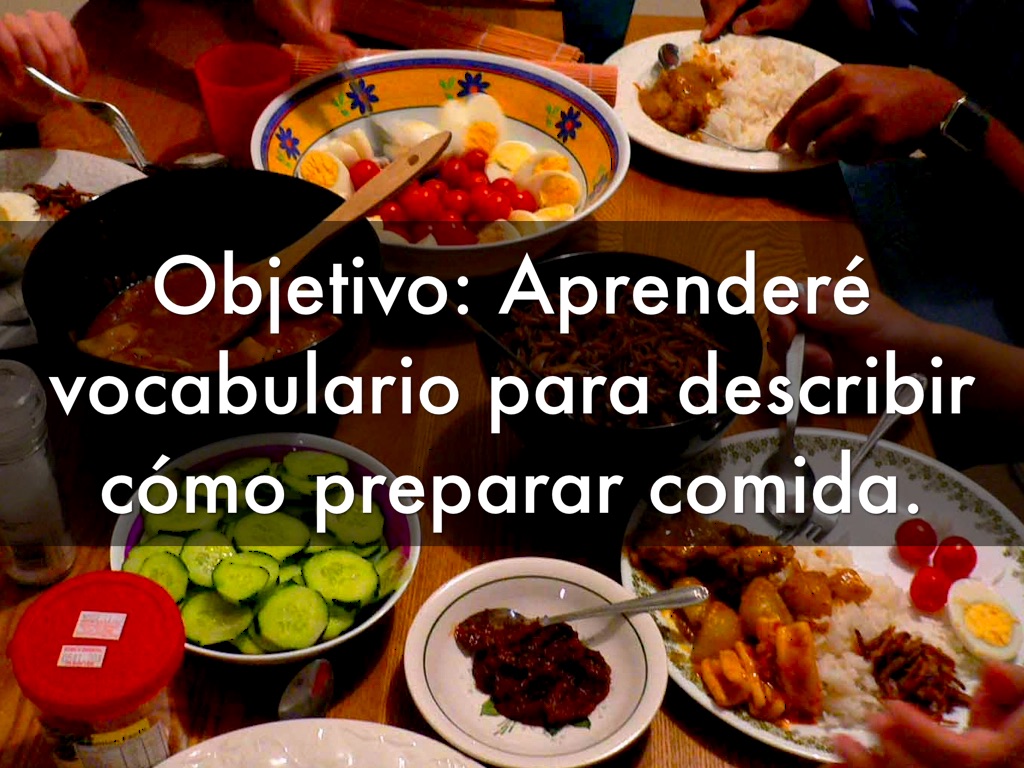 Objetivo: Aprenderé vocabulario para describir cómo preparar comida.