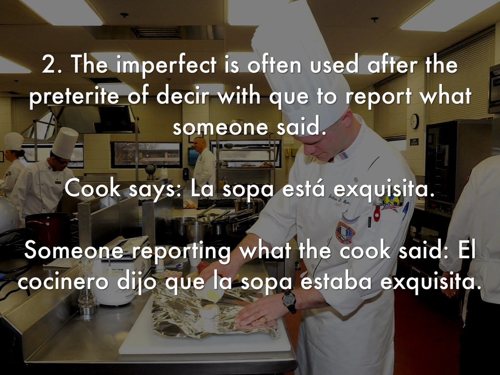 2. The imperfect is often used after the preterite of decir with que to report what someone said.