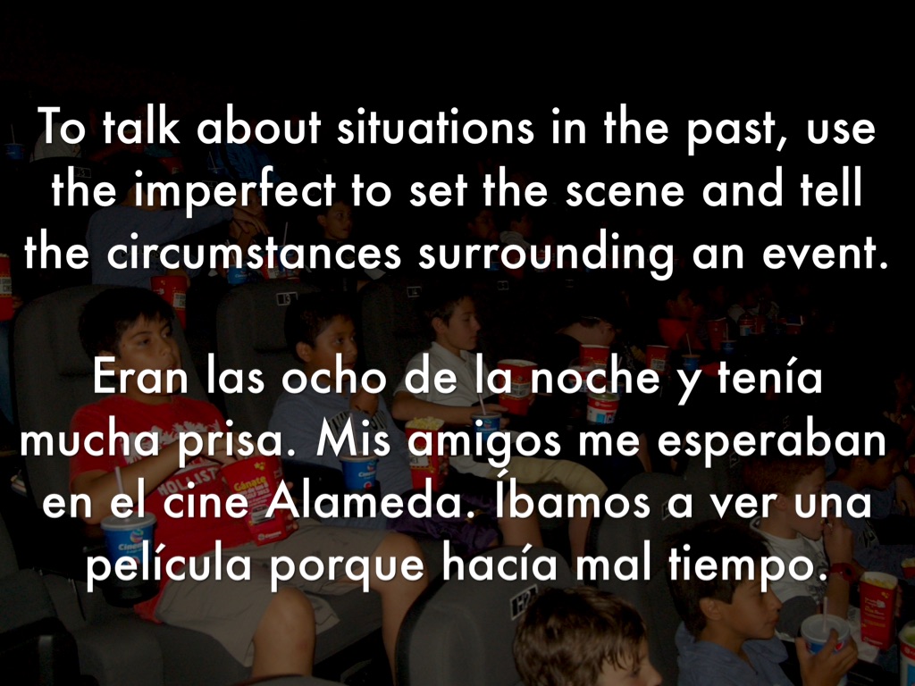 To talk about situations in the past, use the imperfect to set the scene and tell the circumstances surrounding an event.