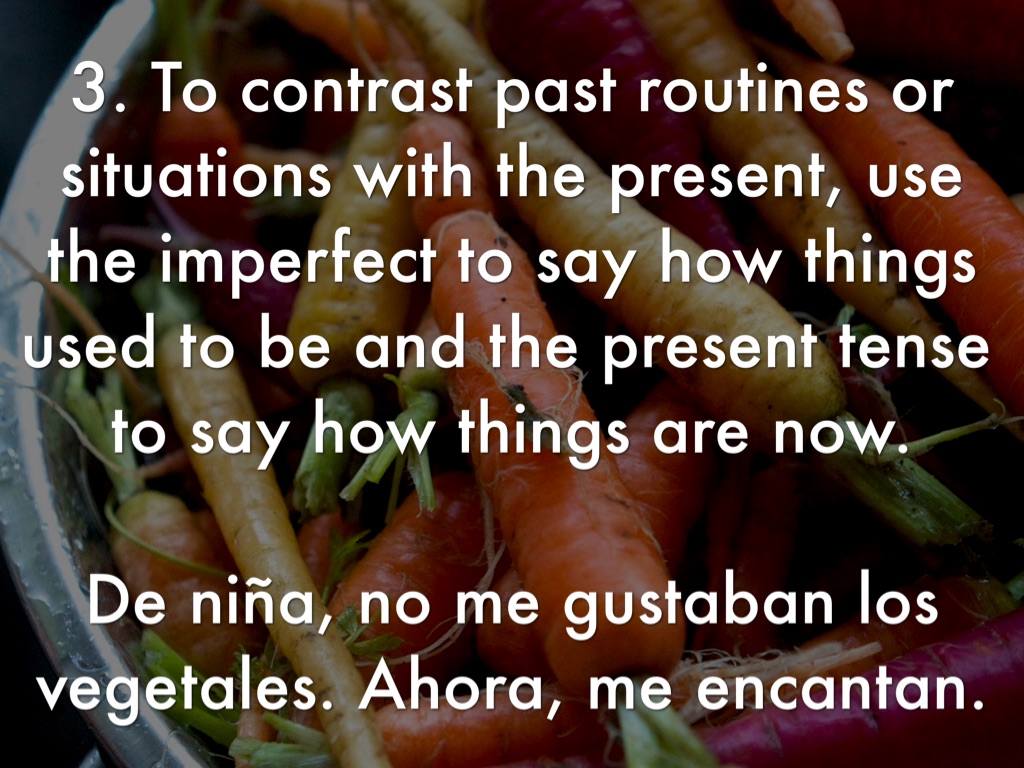 3. To contrast past routines or situations with the present, use the imperfect to say how things used to be and the present tense to say how things are now.