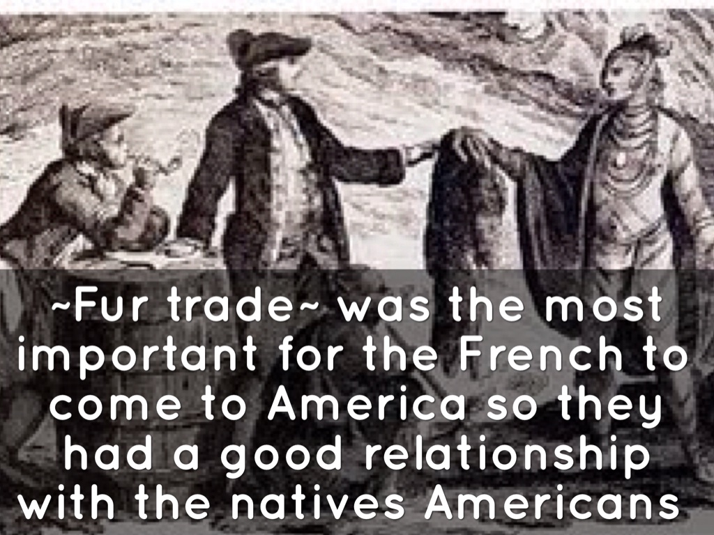 ~Fur trade~ was the most important for the French to come to America so they had a good relationship with the natives Americans