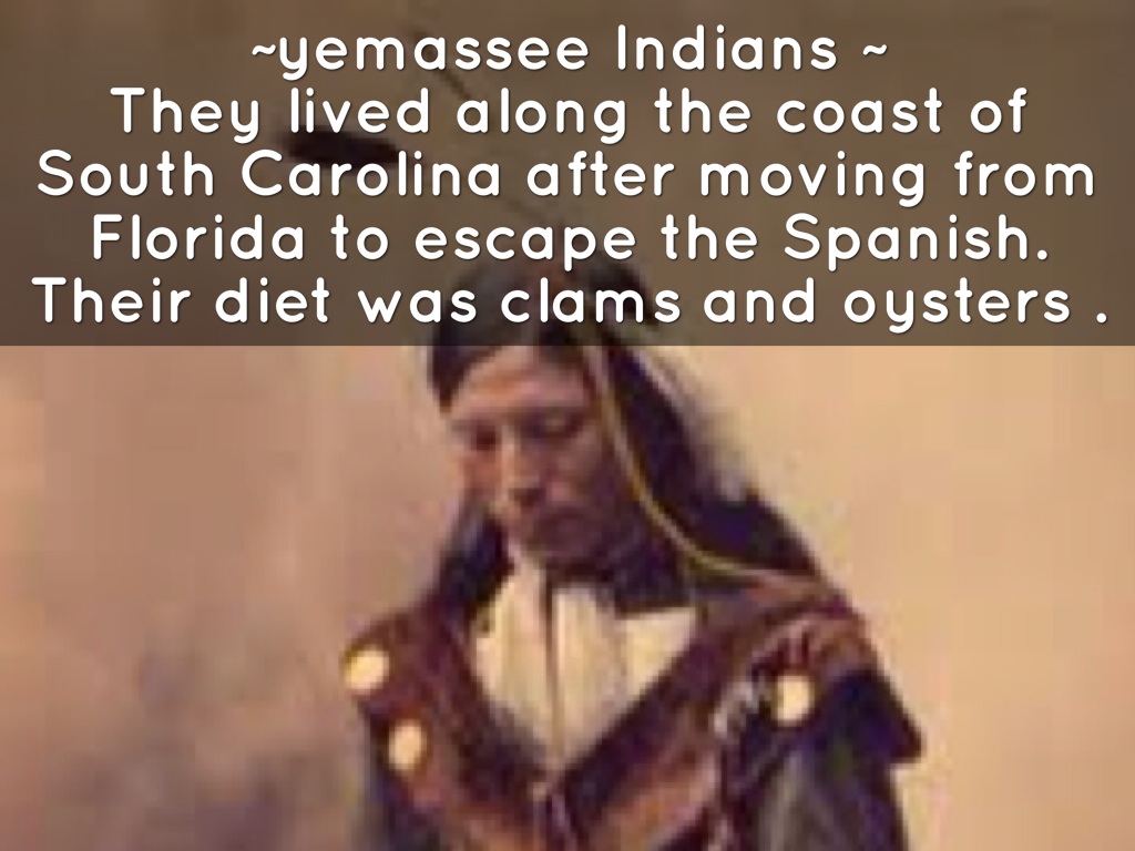 They lived along the coast of South Carolina after moving from Florida to escape the Spanish. Their diet was clams and oysters .