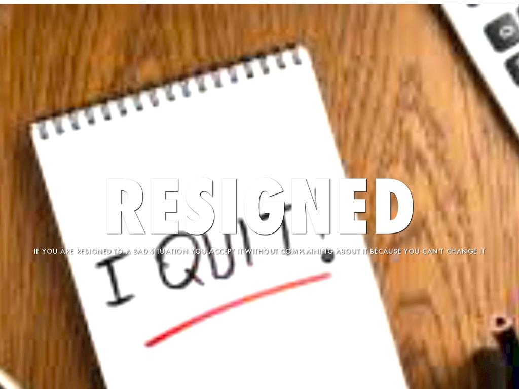IF YOU ARE RESIGNED TO A BAD SITUATION YOU ACCEPT IT WITHOUT COMPLAINING ABOUT IT BECAUSE YOU CAN’T CHANGE IT