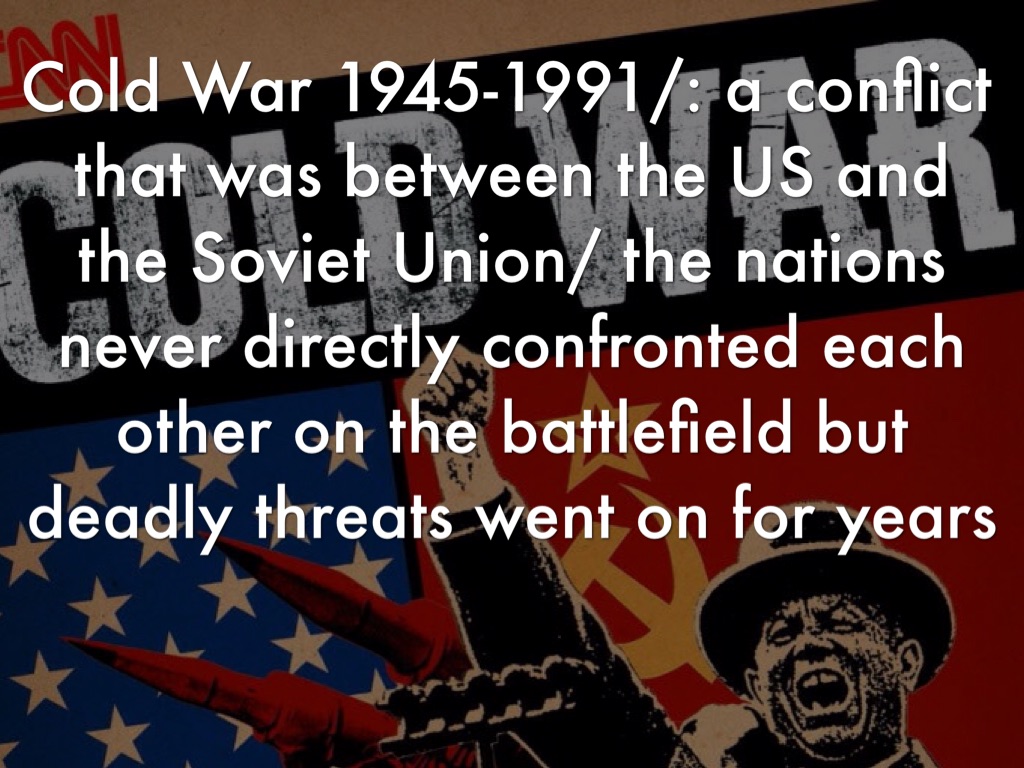 Cold War 1945-1991/: a conflict that was between the US and the Soviet Union/ the nations never directly confronted each other on the battlefield but deadly threats went on for years