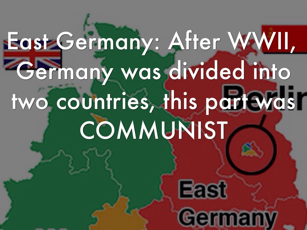 East Germany: After WWII, Germany was divided into two countries, this part was COMMUNIST