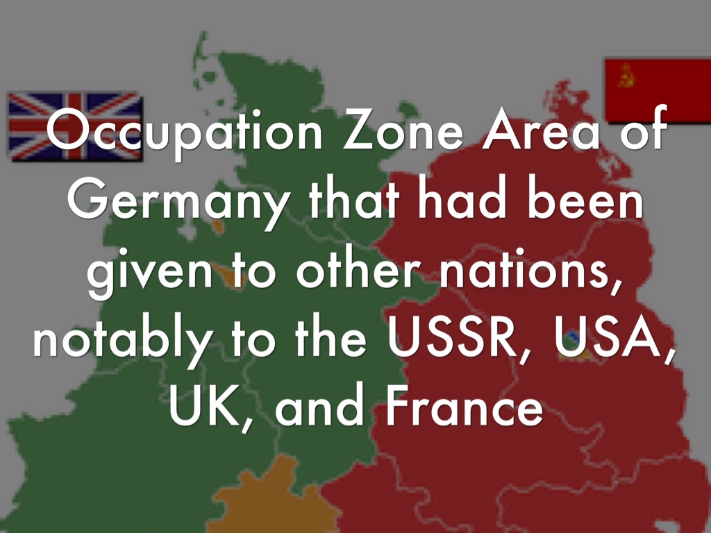Occupation Zone Area of Germany that had been given to other nations, notably to the USSR, USA, UK, and France