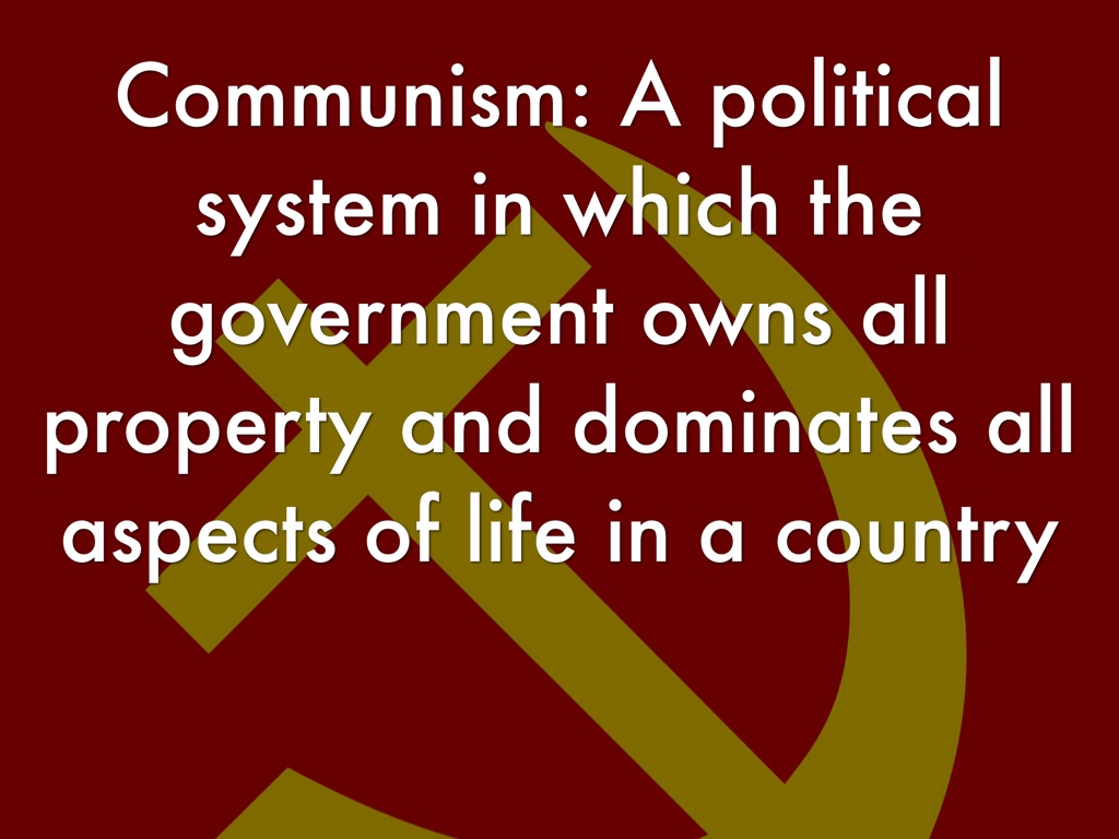 Communism: A political system in which the government owns all property and dominates all aspects of life in a country