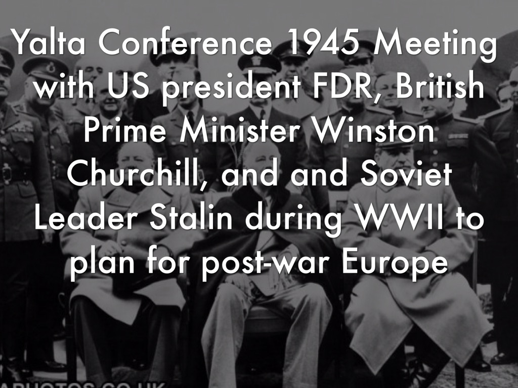 Yalta Conference 1945 Meeting with US president FDR, British Prime Minister Winston Churchill, and and Soviet Leader Stalin during WWII to plan for post-war Europe