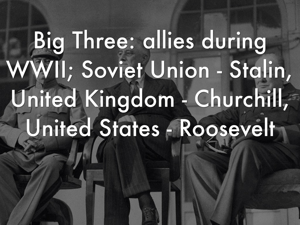 Big Three: allies during WWII; Soviet Union - Stalin, United Kingdom - Churchill, United States - Roosevelt