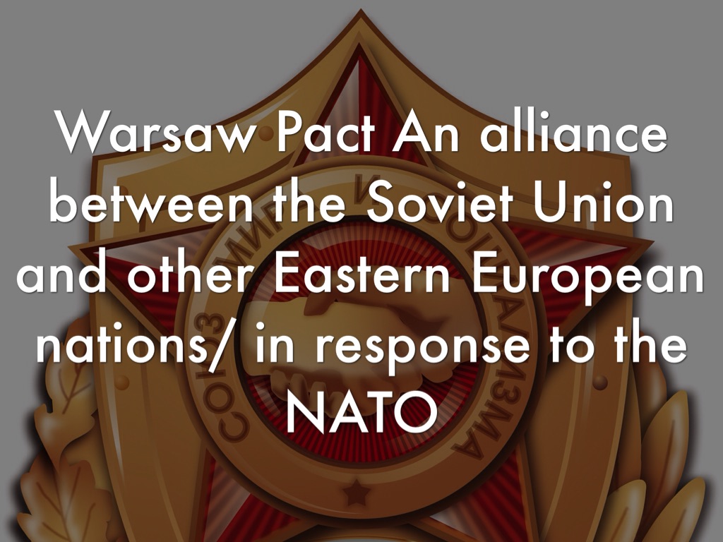 Warsaw Pact An alliance between the Soviet Union and other Eastern European nations/ in response to the NATO