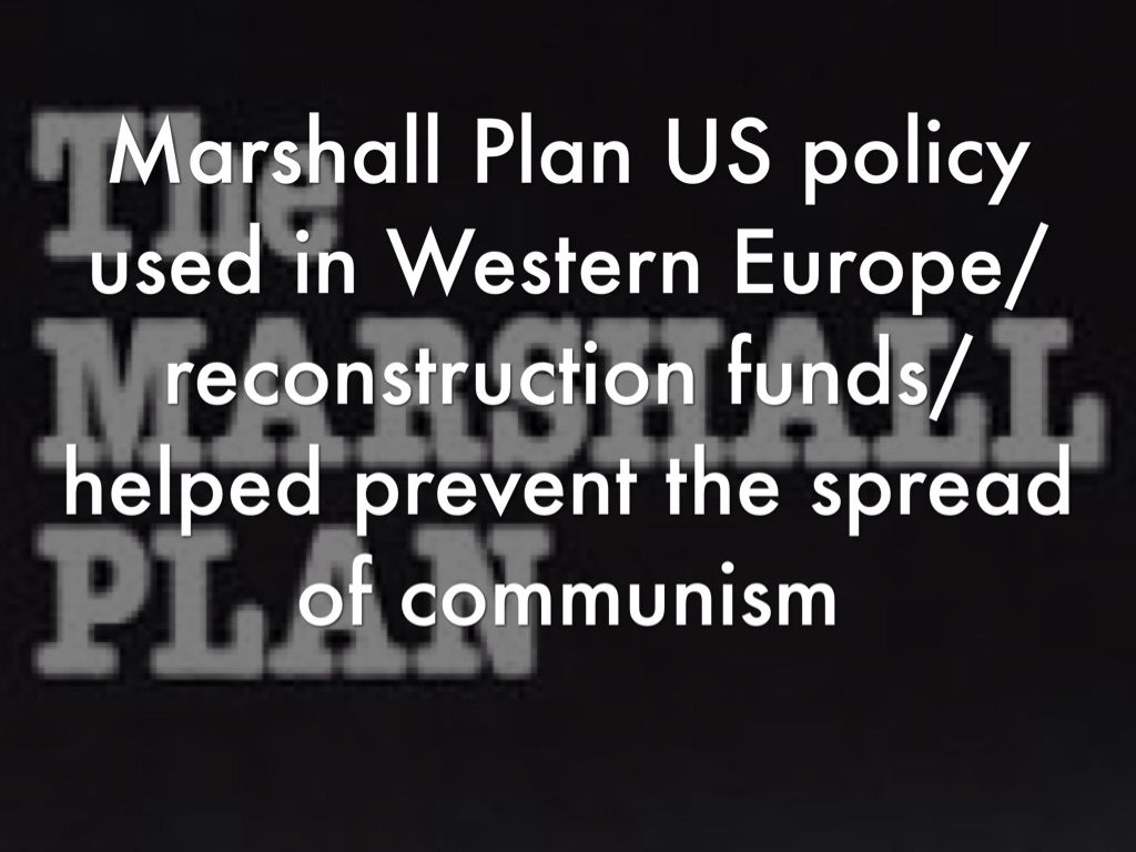 Marshall Plan US policy used in Western Europe/ reconstruction funds/ helped prevent the spread of communism