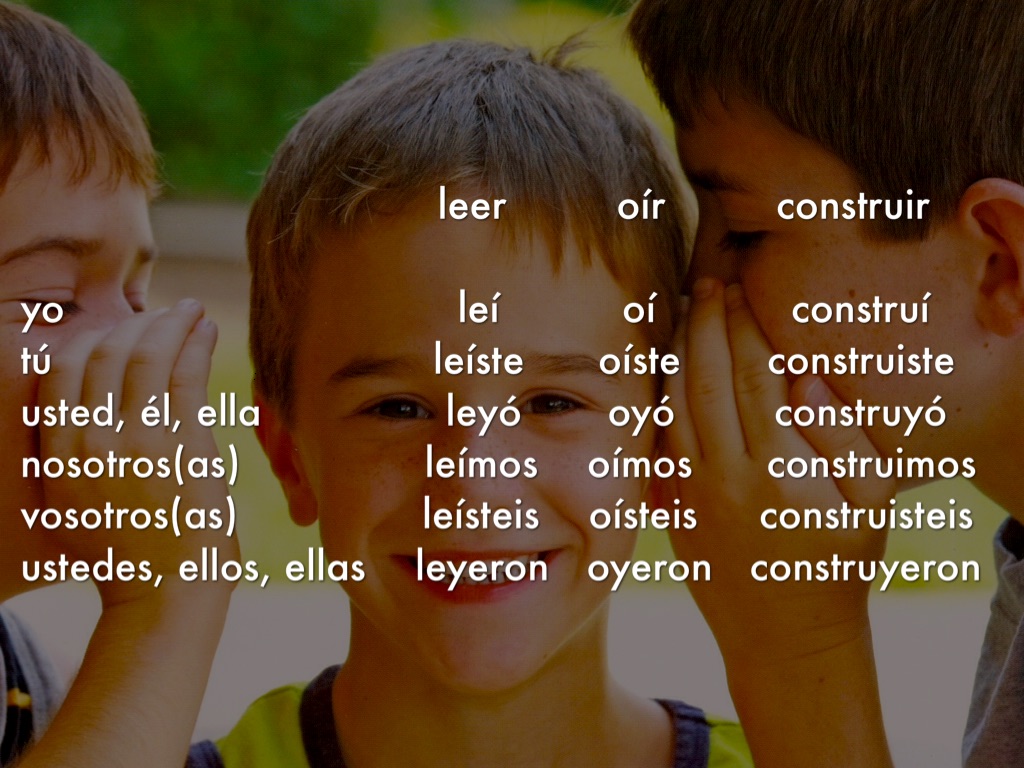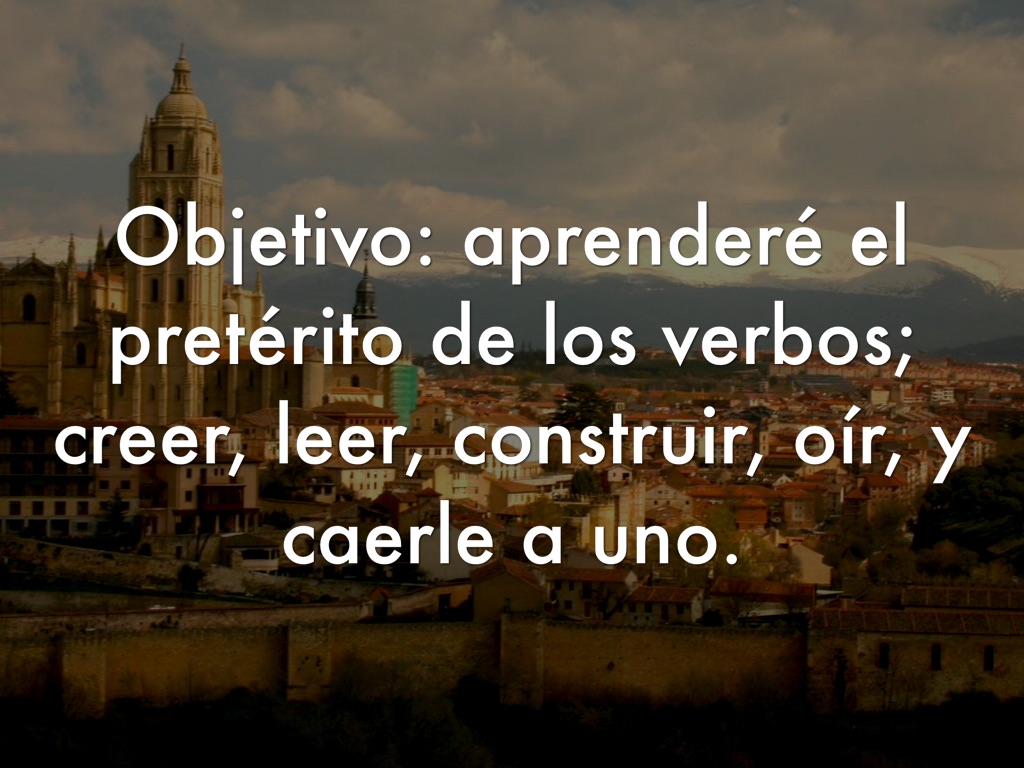 Objetivo: aprenderé el pretérito de los verbos; creer, leer, construir, oír, y caerle a uno.
