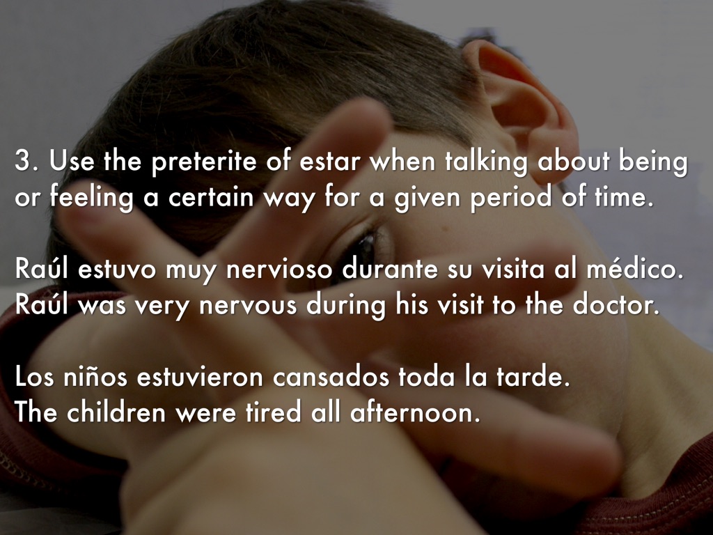 3. Use the preterite of estar when talking about being or feeling a certain way for a given period of time.