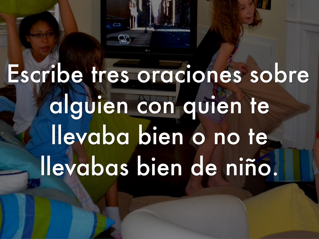Escribe tres oraciones sobre alguien con quien te llevaba bien o no te llevabas bien de niño.