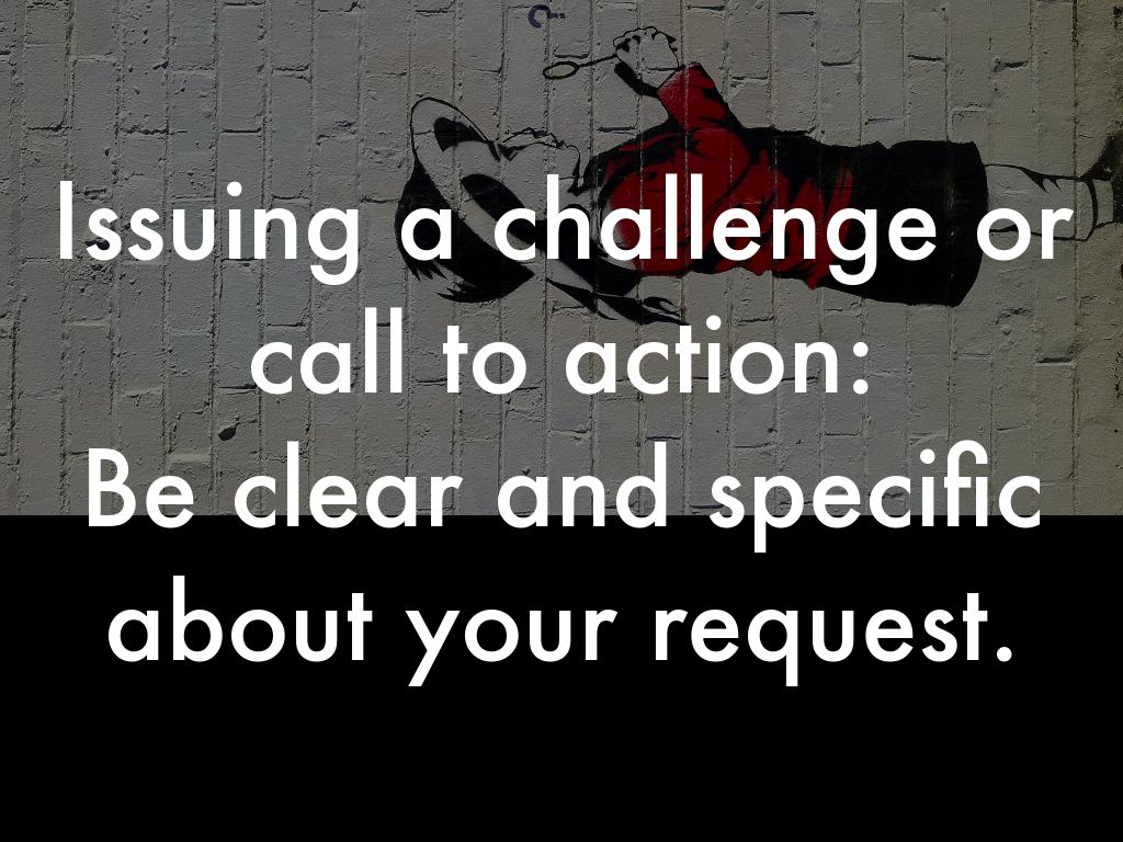 Issuing a challenge or call to action: