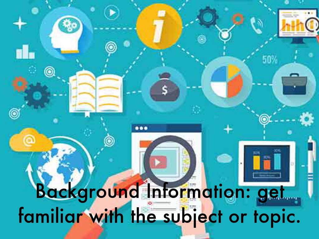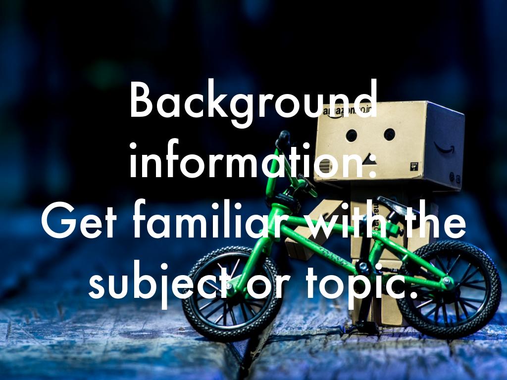 Background Information: get familiar with the subject or topic.