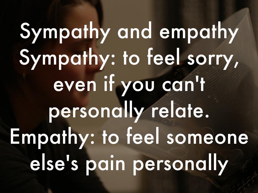 Sympathy: to feel sorry, even if you can't personally relate. Empathy: to feel someone else's pain personally
