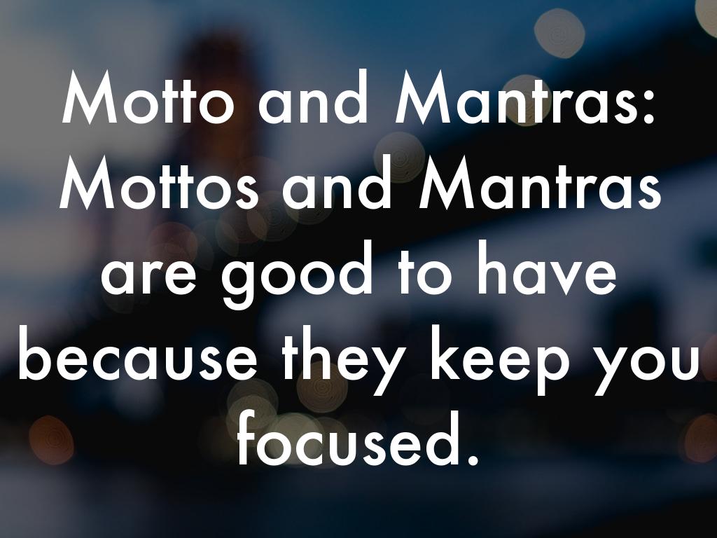 Motto and Mantras: Mottos and Mantras are good to have because they keep you focused.