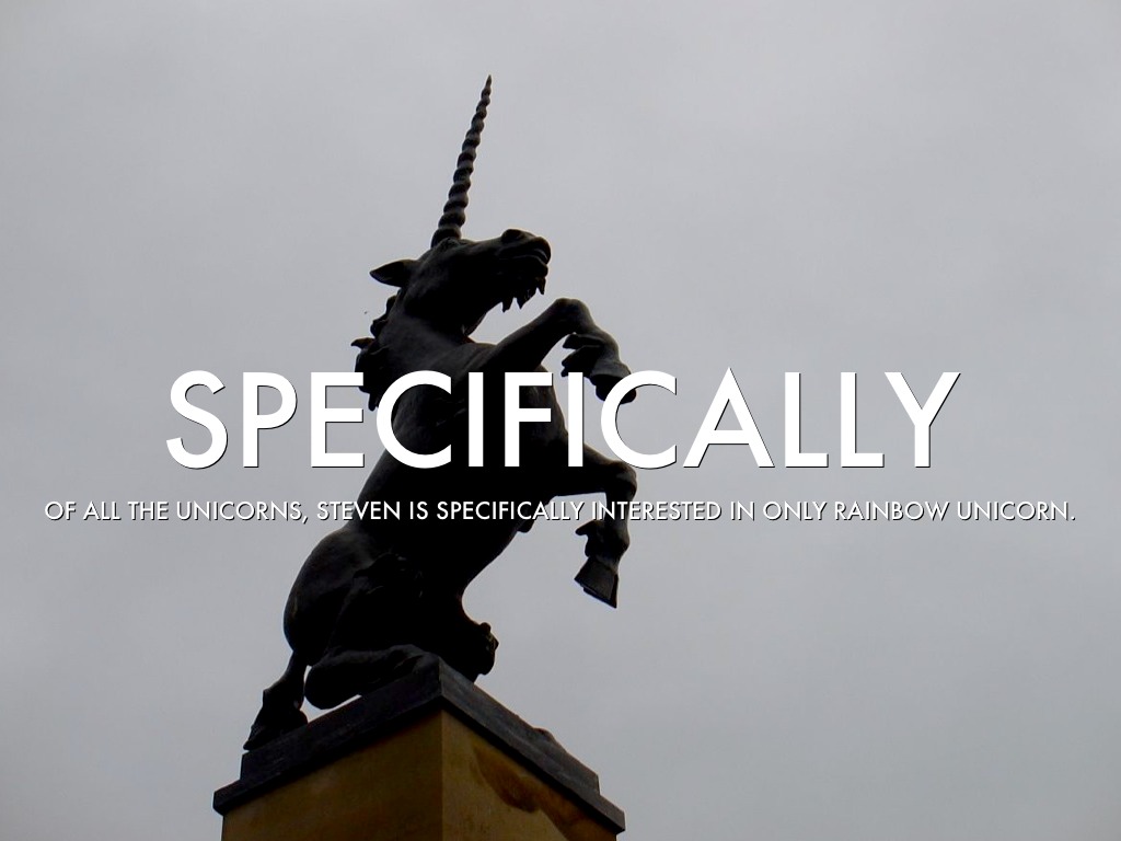 OF ALL THE UNICORNS, STEVEN IS SPECIFICALLY INTERESTED IN ONLY RAINBOW UNICORN.