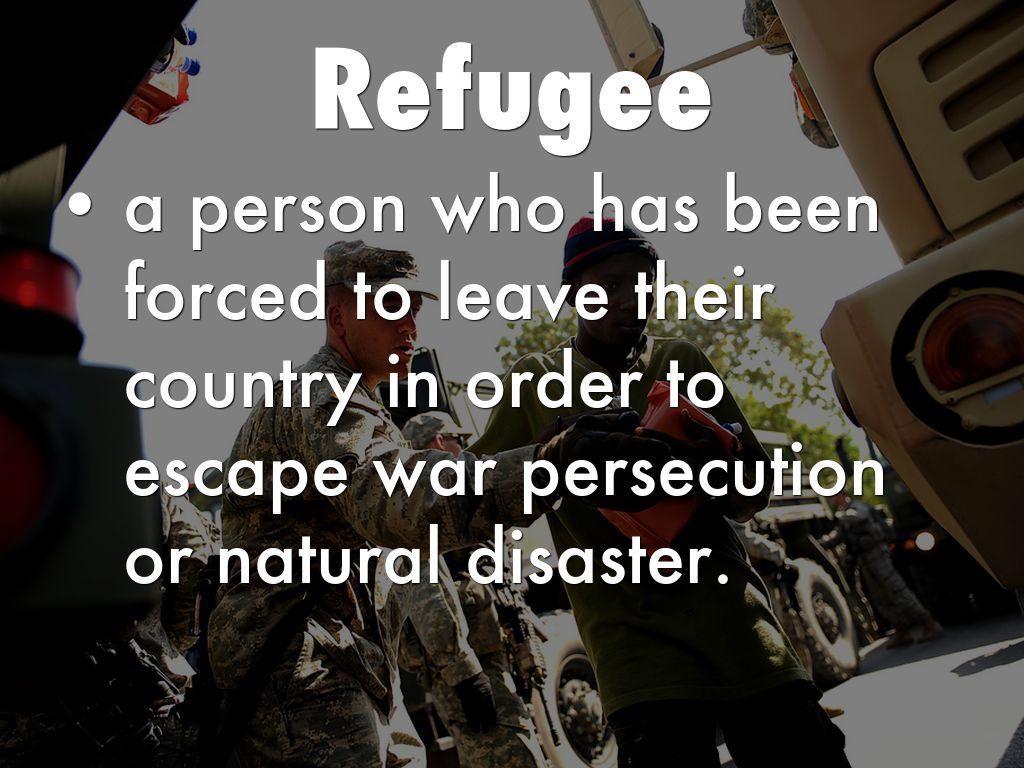 • a person who has been forced to leave their country in order to escape war persecution or natural disaster.