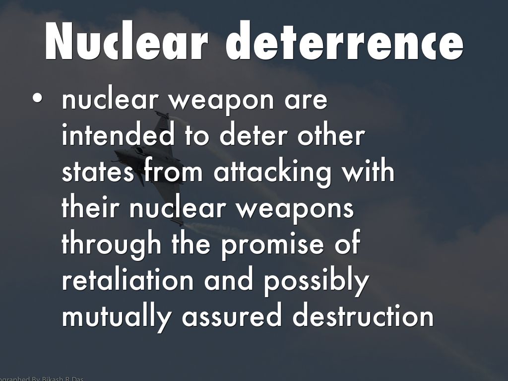 • nuclear weapon are intended to deter other states from attacking with their nuclear weapons through the promise of retaliation and possibly mutually assured destruction