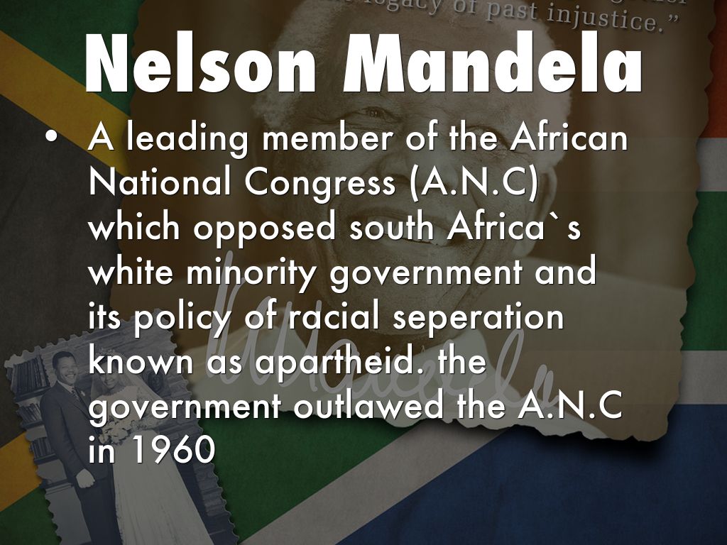 • A leading member of the African National Congress (A.N.C) which opposed south Africa`s white minority government and its policy of racial seperation known as apartheid. the government outlawed the A.N.C in 1960