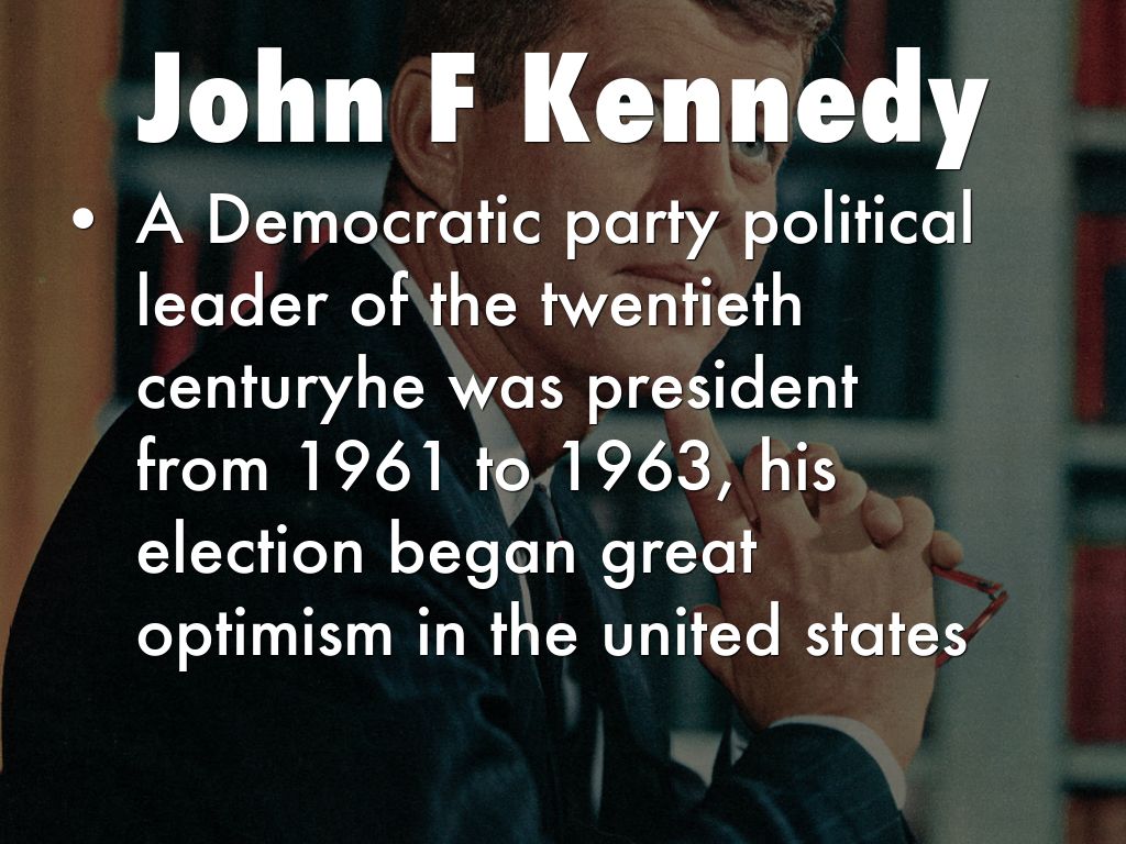 • A Democratic party political leader of the twentieth centuryhe was president from 1961 to 1963, his election began great optimism in the united states