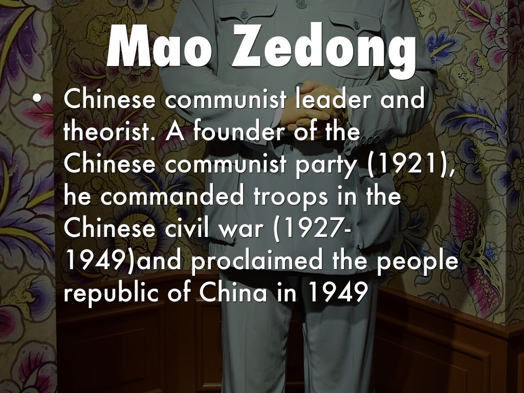 • Chinese communist leader and theorist. A founder of the Chinese communist party (1921), he commanded troops in the Chinese civil war (1927-1949)and proclaimed the people republic of China in 1949