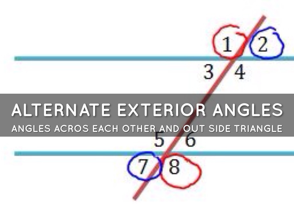 ANGLES ACROS EACH OTHER AND OUT SIDE TRIANGLE