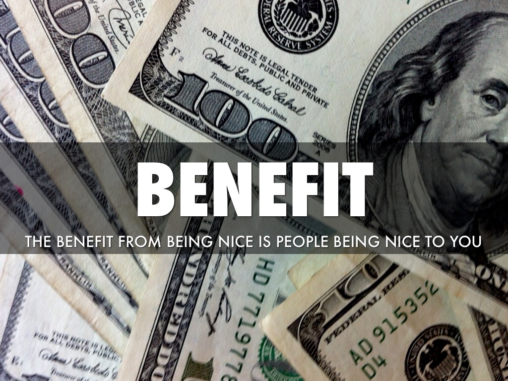 THE BENEFIT FROM BEING NICE IS PEOPLE BEING NICE TO YOU