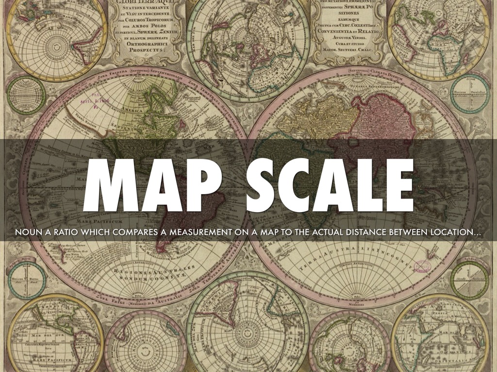 noun a ratio which compares a measurement on a map to the actual distance between locations identified on the map
