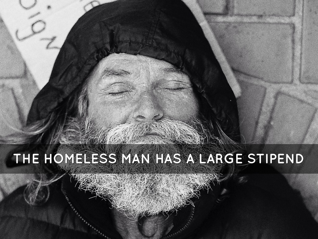THE HOMELESS MAN HAS A LARGE STIPEND