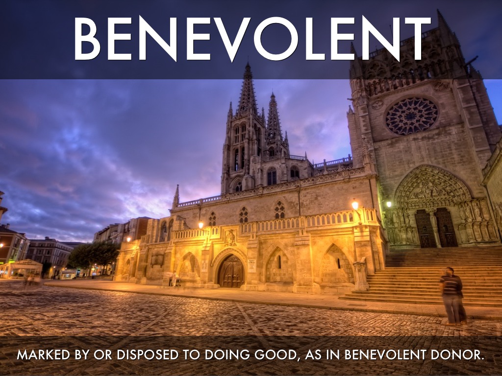 MARKED BY OR DISPOSED TO DOING GOOD, AS IN BENEVOLENT DONOR.