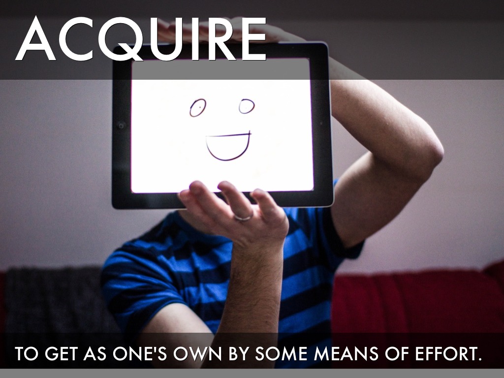 TO GET AS ONE'S OWN BY SOME MEANS OF EFFORT.