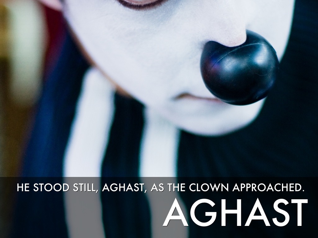 HE STOOD STILL, AGHAST, AS THE CLOWN APPROACHED.