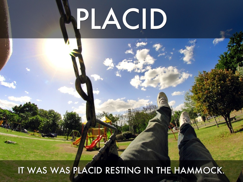 IT WAS WAS PLACID RESTING IN THE HAMMOCK.