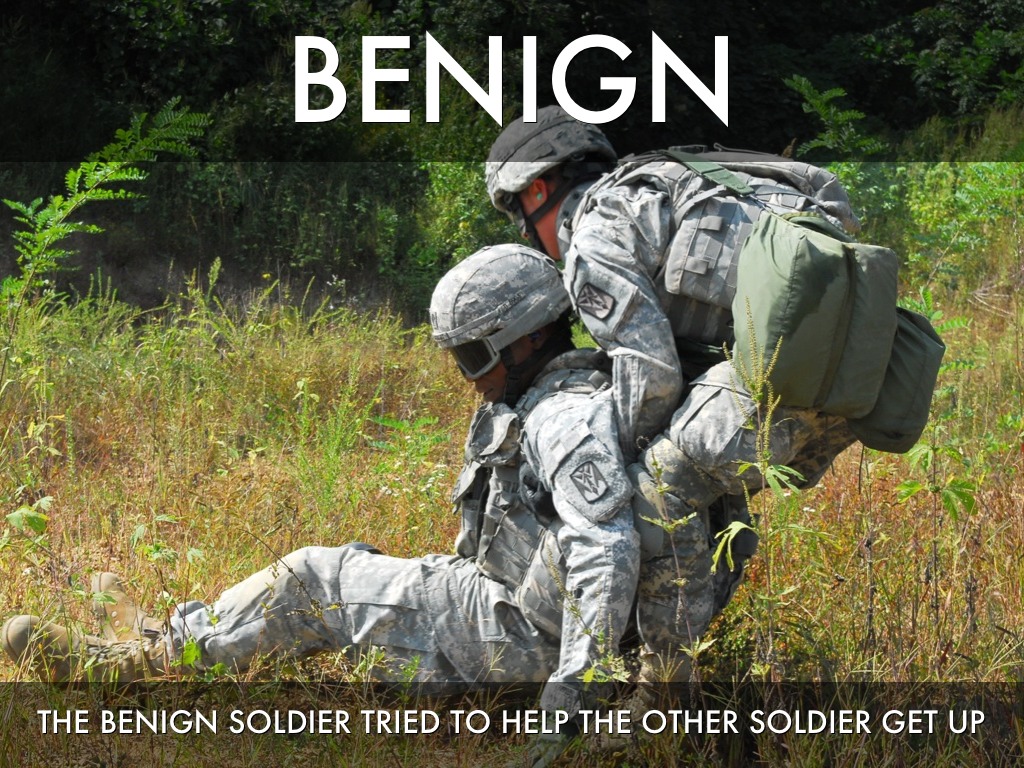THE BENIGN SOLDIER TRIED TO HELP THE OTHER SOLDIER GET UP