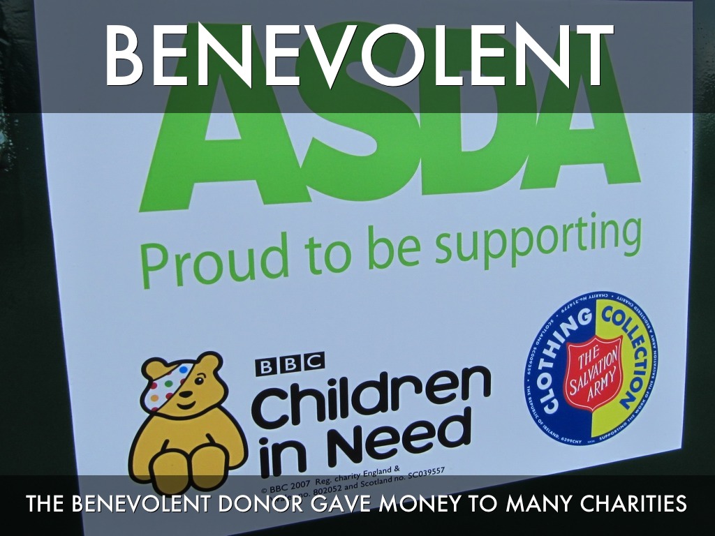 THE BENEVOLENT DONOR GAVE MONEY TO MANY CHARITIES