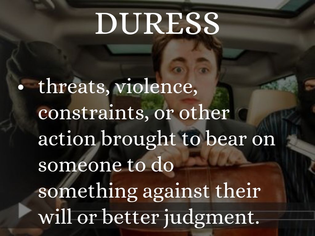 threats, violence, constraints, or other action brought to bear on someone to do something against their will or better judgment.