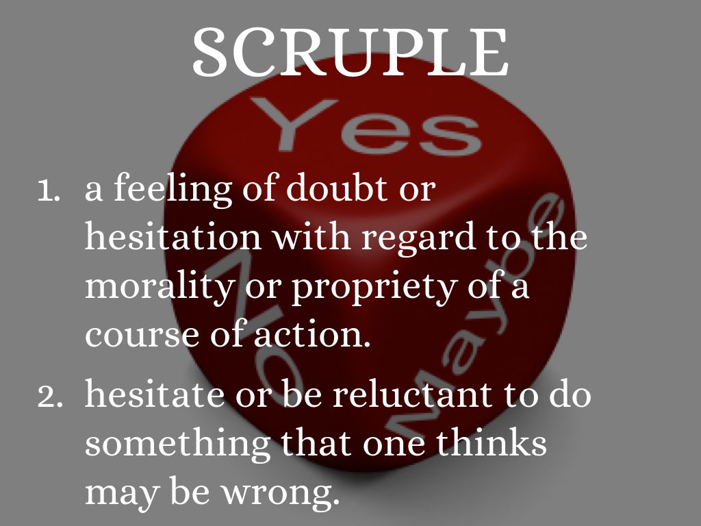 hesitate or be reluctant to do something that one thinks may be wrong.