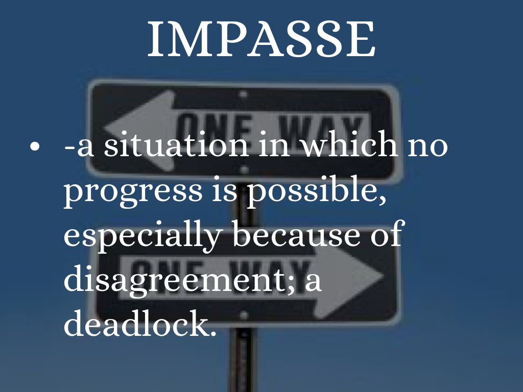 -a situation in which no progress is possible, especially because of disagreement; a deadlock.