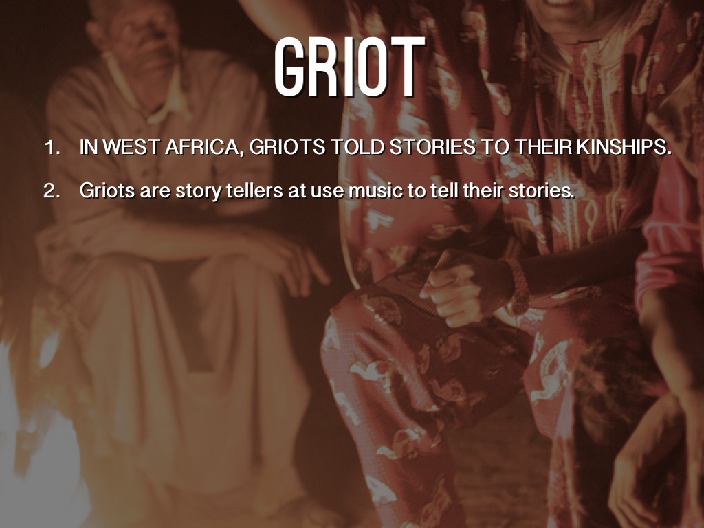 • IN WEST AFRICA, GRIOTS TOLD STORIES TO THEIR KINSHIPS.