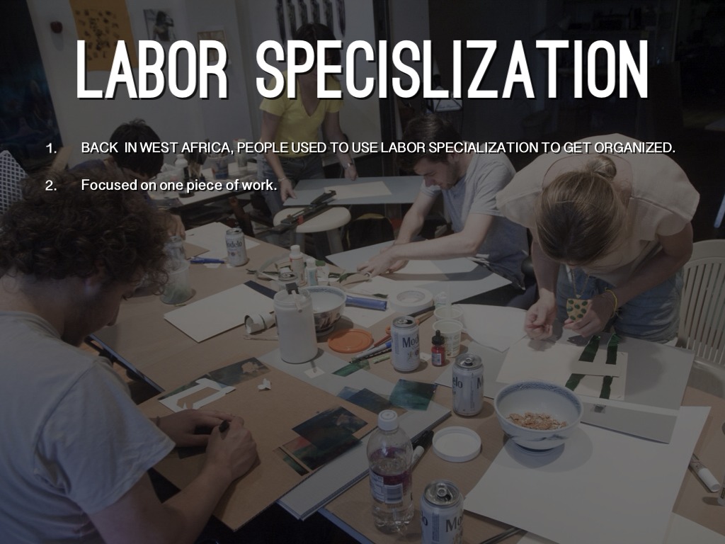 • BACK IN WEST AFRICA, PEOPLE USED TO USE LABOR SPECIALIZATION TO GET ORGANIZED.