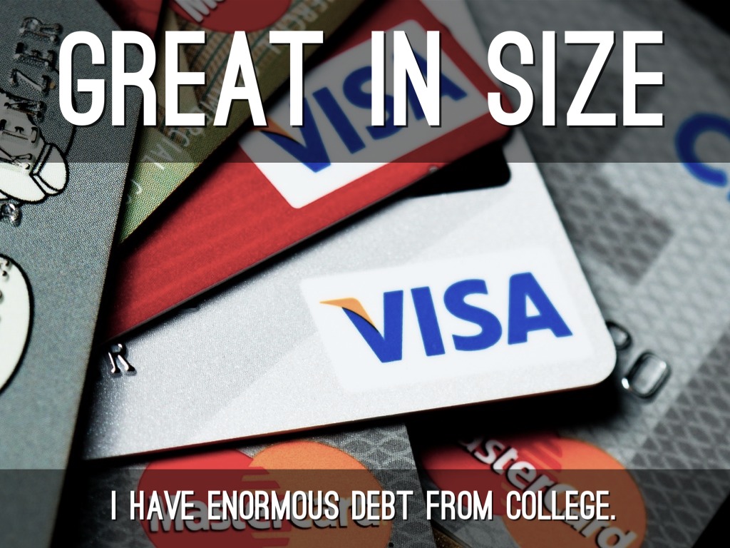 I HAVE ENORMOUS DEBT FROM COLLEGE.
