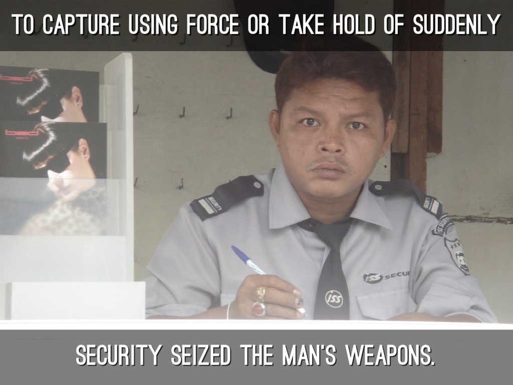 TO CAPTURE USING FORCE OR TAKE HOLD OF SUDDENLY