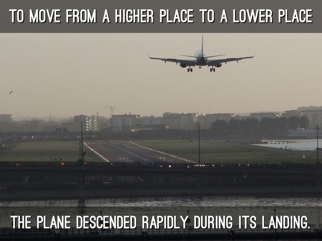 TO MOVE FROM A HIGHER PLACE TO A LOWER PLACE