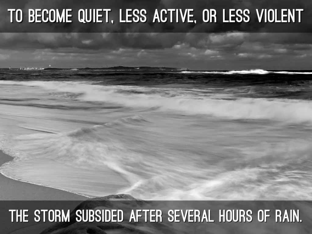 TO BECOME QUIET, LESS ACTIVE, OR LESS VIOLENT