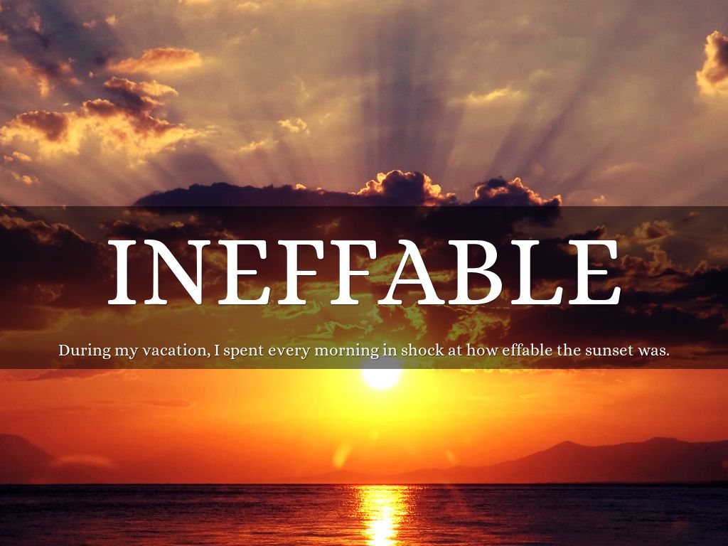 During my vacation, I spent every morning in shock at how effable the sunset was.