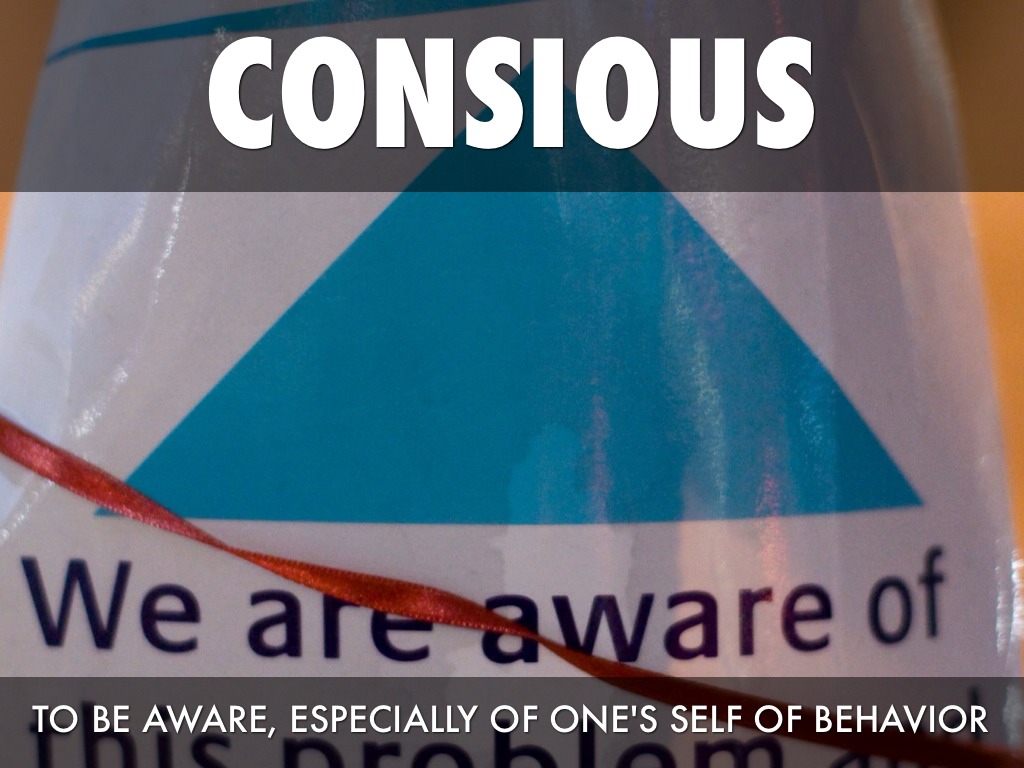 TO BE AWARE, ESPECIALLY OF ONE'S SELF OF BEHAVIOR